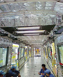 在側壁和頂棚的應用事例中,Greencos綠寰宇多型號吸聲隔熱泡綿板的低熱能傳導性顯示出高效隔熱的性能。例如,空調載客車的運行費用因此可以得到很大程度的降低。